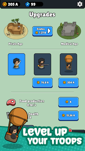Геймплей строится на управлении ресурсами, найме воинов и атаках на базы. Выбираешь юнитов, апгрейдишь их, штурмуешь уровни с боссами. Мод Epic Ancient: Warrior Fight убирает ограничения и даёт:
