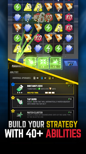 Геймплей строится на быстрых раундах: матчи по три хода, где цепочки из фишек дают атаки и защиту. Прокачивай отряд, комбинируй спеллы и тактики, чтобы заткнуть оппонента. Мод ONE Fight Arena убирает все ограничения и даёт: