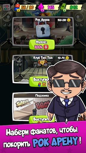 Rock Way — симулятор рок-группы от KakaduGame. Собираешь команду музыкантов, репетируешь треки, устраиваешь концерты и растишь славу в мире рока. Цепляет механикой менеджмента: нанимаешь гитаристов, барабанщиков, пишете хиты и зарабатываете фанатов. Обычная версия давит нехваткой монет на оборудование и энергией для выступлений, донат ускоряет всё за реальные бабки. Взлом Rock Way меняет расклад — бесконечные монеты и энергия с первого запуска, все участники группы разблокированы, никаких гриндов для туров.
